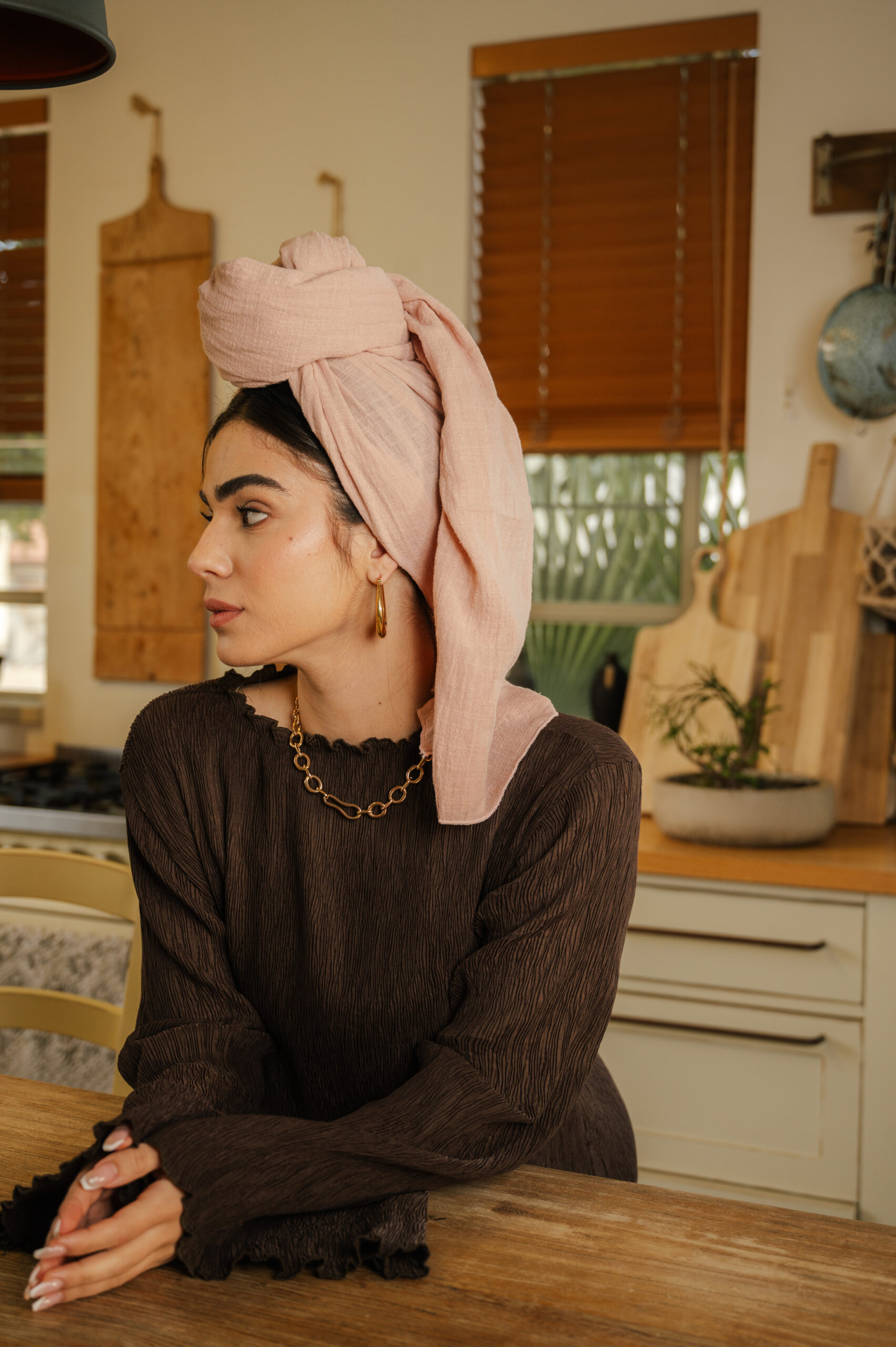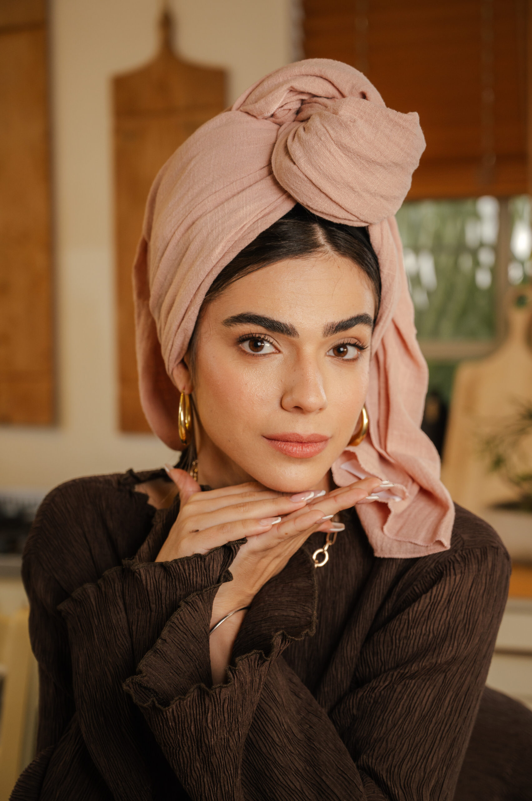 בד דמוי פשתן יציב למראה מרשים על הראש. קלאסי