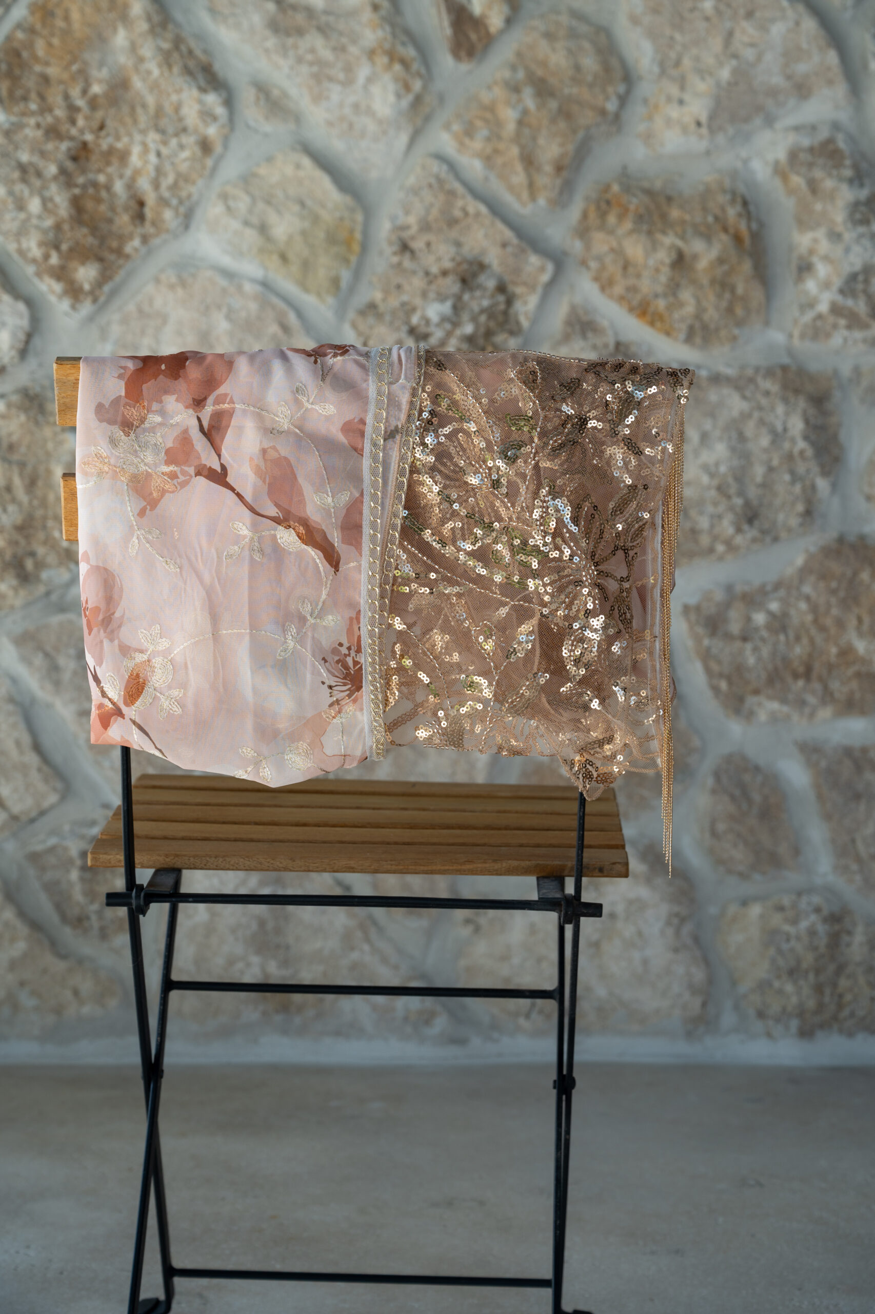 ✨ שילוב בד פייט עם חרוזים זהובים עדינים